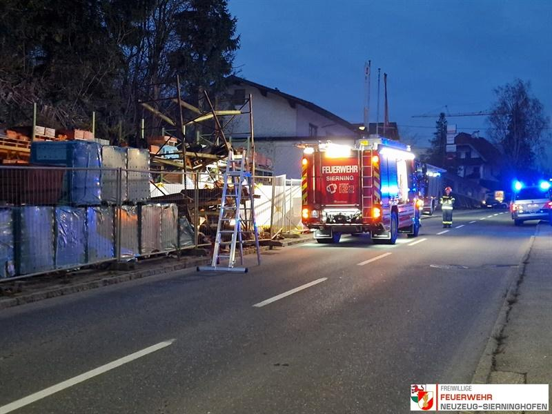 Beim Eintreffen der Feuerwehr waren das Rote Kreuz und die Polizei bereits vor Ort. Im Fahrzeug befanden sich keine Personen mehr. Die Feuerwehr richtete eine Straßensperre samt Umleitung ein und sicherte die Unfallstelle ab. Nachdem die verletzte Person vom Roten Kreuz ins Krankenhaus gebracht worden war, konnten die Einsatzkräfte mit der Bergung des PKW sowie dem Abbau des beschädigten Regals beginnen.