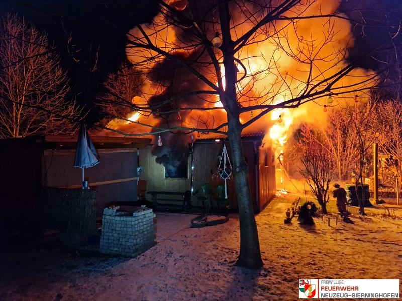 Am 06. Jänner 2026 wurden um 00:44 Uhr die vier Feuerwehren der Marktgemeinde Sierning (FF Hilbern, FF Neuzeug-Sierninghofen, FF Pichlern und FF Sierning) zu einem Brandeinsatz mit dem Alarmstichwort „Brand Gartenhütte“ alarmiert.
