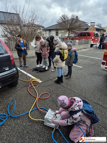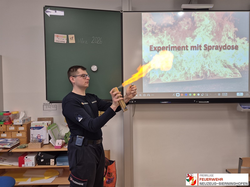Der erste Teil des Programms fand direkt in der Schule statt. In einem spannenden Vortrag vermittelten Feuerwehrmitglieder den Mädchen und Burschen grundlegendes Wissen rund um das Thema Brand und Verbrennung. Anhand anschaulicher Experimente konnten die Kinder den Verbrennungsvorgang selbst erforschen. Ein Wissenscheck zur Brandschutzerziehung sowie eine Einführung in das Feuerwehrwesen und die Feuerwehrjugend rundeten diesen Abschnitt ab. Anschließend ging es ins Feuerwehrhaus. Dort erhielten die Schülerinnen und Schüler eine verständliche Erklärung zur Alarmierung, die mithilfe einer Bildschirmvisualisierung und einer Testalarmierung praxisnah demonstriert wurde.