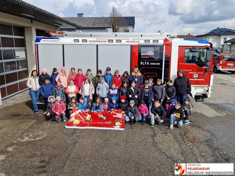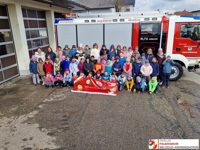Für 90 Schülerinnen und Schüler der 2. und 3. Klassen der Volksschule Sierninghofen-Neuzeug stand am 17. März 2026 ein besonderer Programmpunkt auf dem Stundenplan: ein Besuch bei der Freiwilligen Feuerwehr Neuzeug-Sierninghofen im Rahmen des Projekts „Gemeinsam.Sicher.Feuerwehr“. Begleitet von ihren Lehrerinnen tauchten die Kinder in die Welt der Feuerwehr ein und erlebten einen abwechslungsreichen sowie lehrreichen Vormittag.