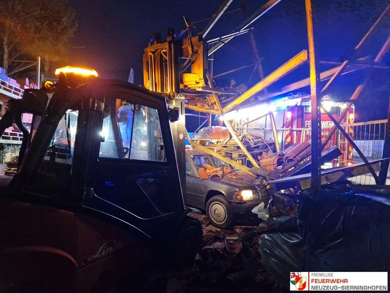 Am 19. November 2025 um 15:55 Uhr wurden die Feuerwehren Neuzeug-Sierninghofen, Pichlern und Sierning zu einem Einsatz mit dem Alarmstichwort „Personenrettung - Verkehrsunfall PKW“ alarmiert. Zusätzlich erhielten die Einsatzkräfte die Information, dass ein PKW unter mehreren Paletten eingeklemmt sei.