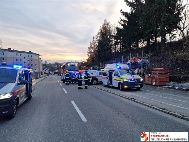 Am 19. November 2025 um 15:55 Uhr wurden die Feuerwehren Neuzeug-Sierninghofen, Pichlern und Sierning zu einem Einsatz mit dem Alarmstichwort „Personenrettung - Verkehrsunfall PKW“ alarmiert. Zusätzlich erhielten die Einsatzkräfte die Information, dass ein PKW unter mehreren Paletten eingeklemmt sei.